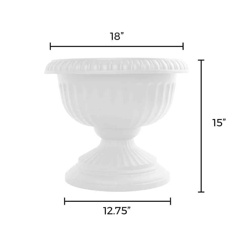- Includes 1 – Bloem Grecian urn planter 18 in. Casper White