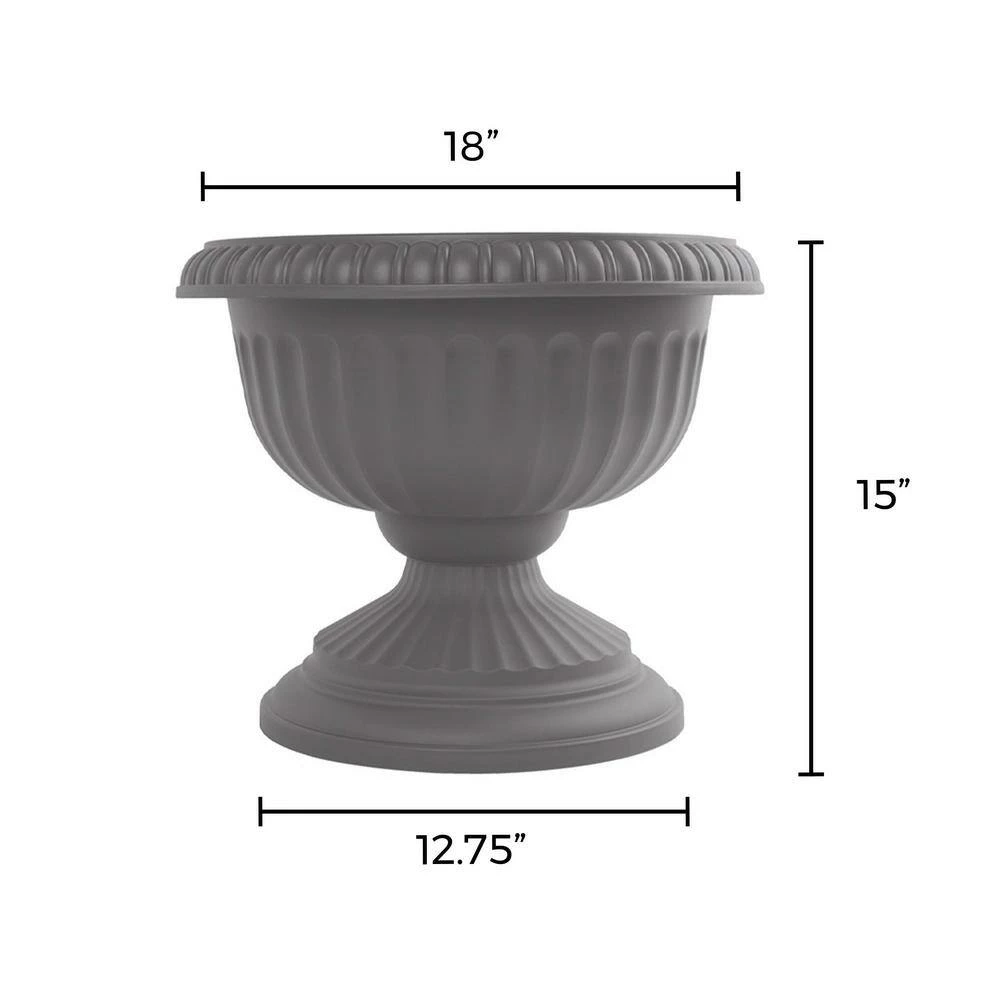 - Includes 1 – Bloem Grecian urn planter 18 in. Charcoal