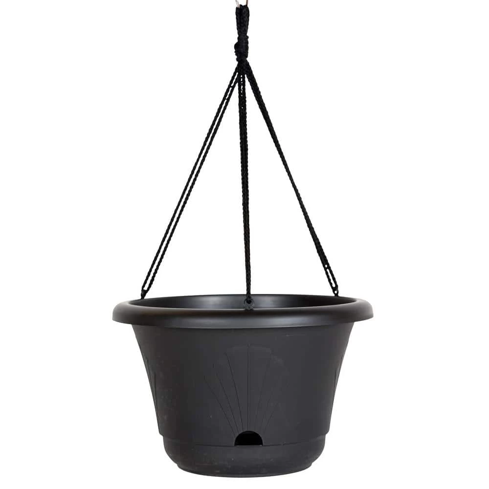 - Includes 1 – Bloem Lucca Self Watering Hanging Basket 13″ Black with matching macrame hanger and ring included