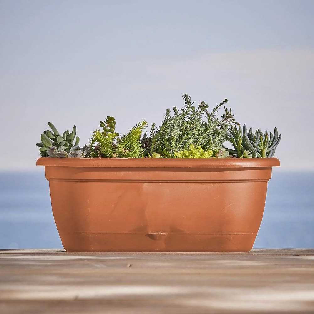 - Includes one Bloem Lucca 18 in. Terra Cotta Self Watering Window Box with saucer tray