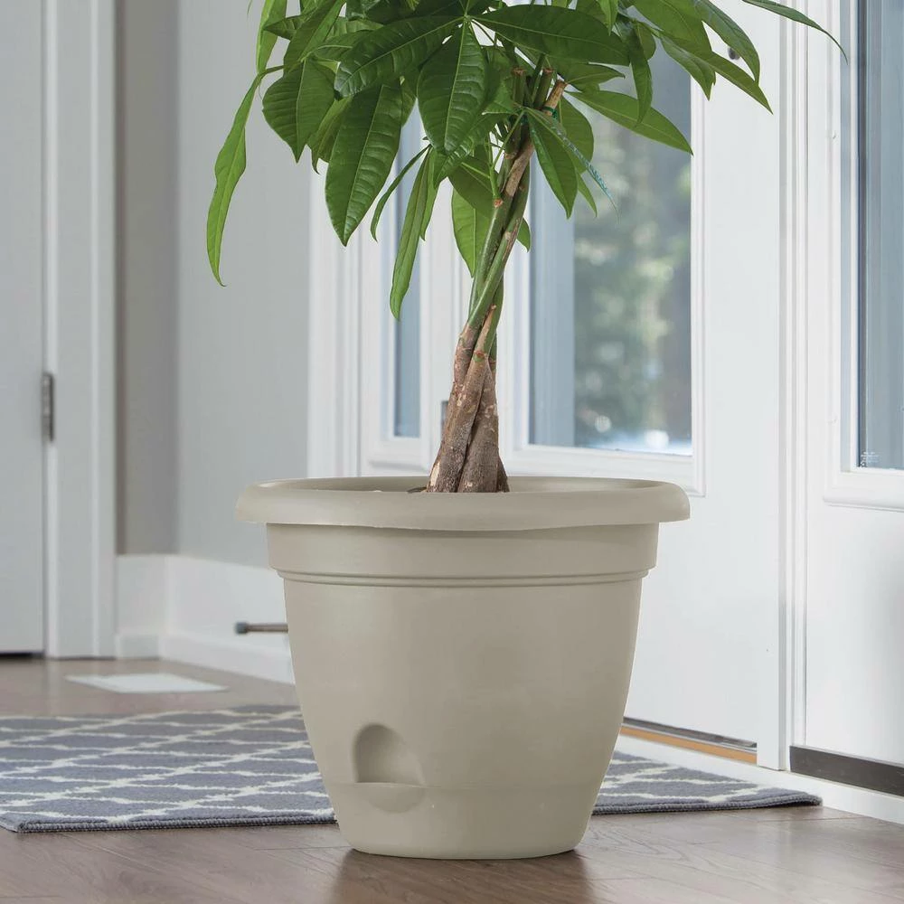 Lucca Collection by Bloem: If your green thumb can get a little forgetful, make sure you get the Bloem Lucca planter. The planter comes with an attached basin saucer that can be filled for the plant to feed from once the root system is established. To start the plant, use convention top watering techniques and then switch to bottom watering by filling the basin as needed for the roots to wick the water up. The fill spot is more subtle than traditional self-watering planters, giving the flower pot a more acceptable appearance. Matte finish is perfect for resisting scratches, dirt, and fingerprints. Suggested accessories (sold separately) – Bloem Aqua Rite Watering Cans available in 56 oz. and 144 oz. size in multiple color options.