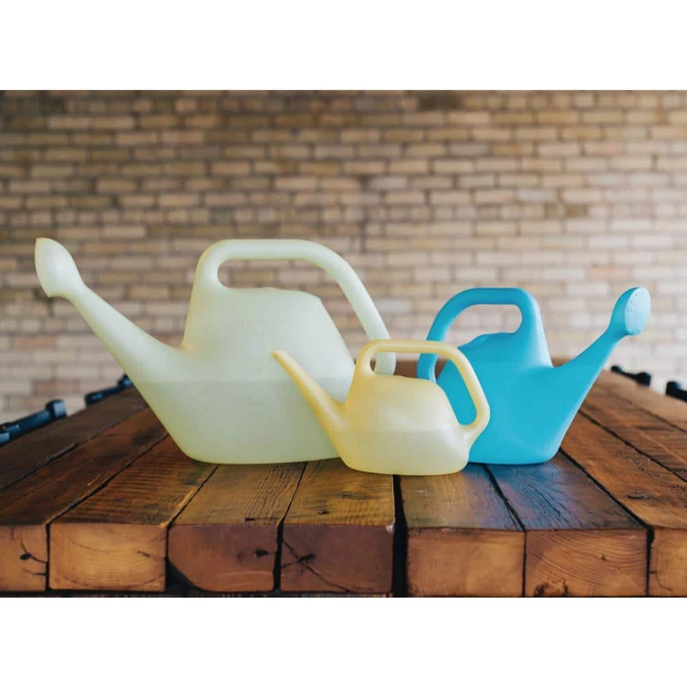 TRANSLUCENT COLLECTION by Bloem: This Watering Can is great for both indoor and outdoor watering needs. Translucent color palette provides easy visibility to water level. Water level markings are shown in gallons and liters for easy measuring. The loop handle offers multiple hand positioning for better maneuverability and control when watering. All weather durability with UV protection and thick wall design ensures long lasting use. Made in USA.