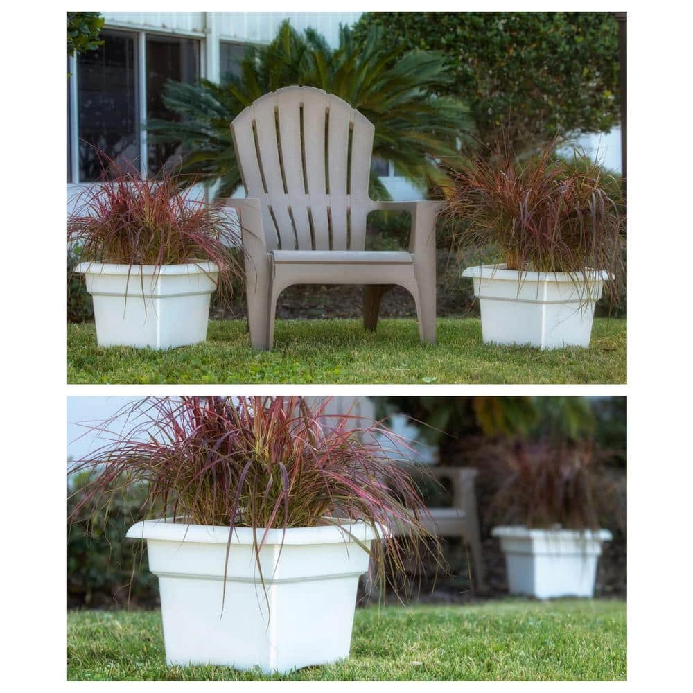 Veranda Collection by Bloem: Decorate with a burst of color and class. The Bloem Veranda Patio Deck Box Planter offers a rolled lip wide opening and ample soil space to accommodate several grower pots. The Veranda Patio Planter from Bloem is made from polyethylene plastic, which means your planter will last season after season. It can be used indoors or outdoors and its color won’t fade. This eco-friendly planter is water, rot and insect resistant and is available in several colors and sizes. It also flaunts a thick-walled design and optional punch out drainage holes.