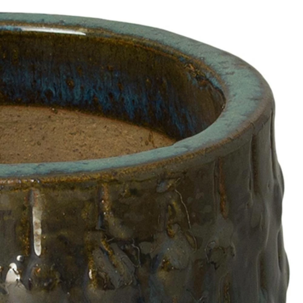 This ceramic stud pot is handcrafted and finished in a glossy teal glaze. Our unique teal glaze is a deep ocean blue that fades into a bright teal in the center of the planter. The body of the planter is accented by vertical columns of round studs that surround the planter. Made from heavy and durable red clay, this planter is suitable for both indoor and outdoor use. Standing 15 in. tall, this planter is perfect for adding a splash of color and texture to any living space.