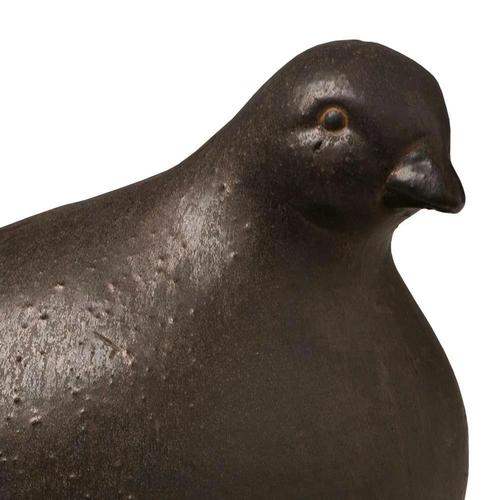 This ceramic quail statue is handcrafted and finished in a metallic glaze. Our metallic glaze gives the appearance of a cast bronze sculpture. Made from heavy and durable red clay, this quail statue is suitable for both indoor and outdoor use. This sleek and simple statue is the perfect addition to bring a touch of nature to any living space.