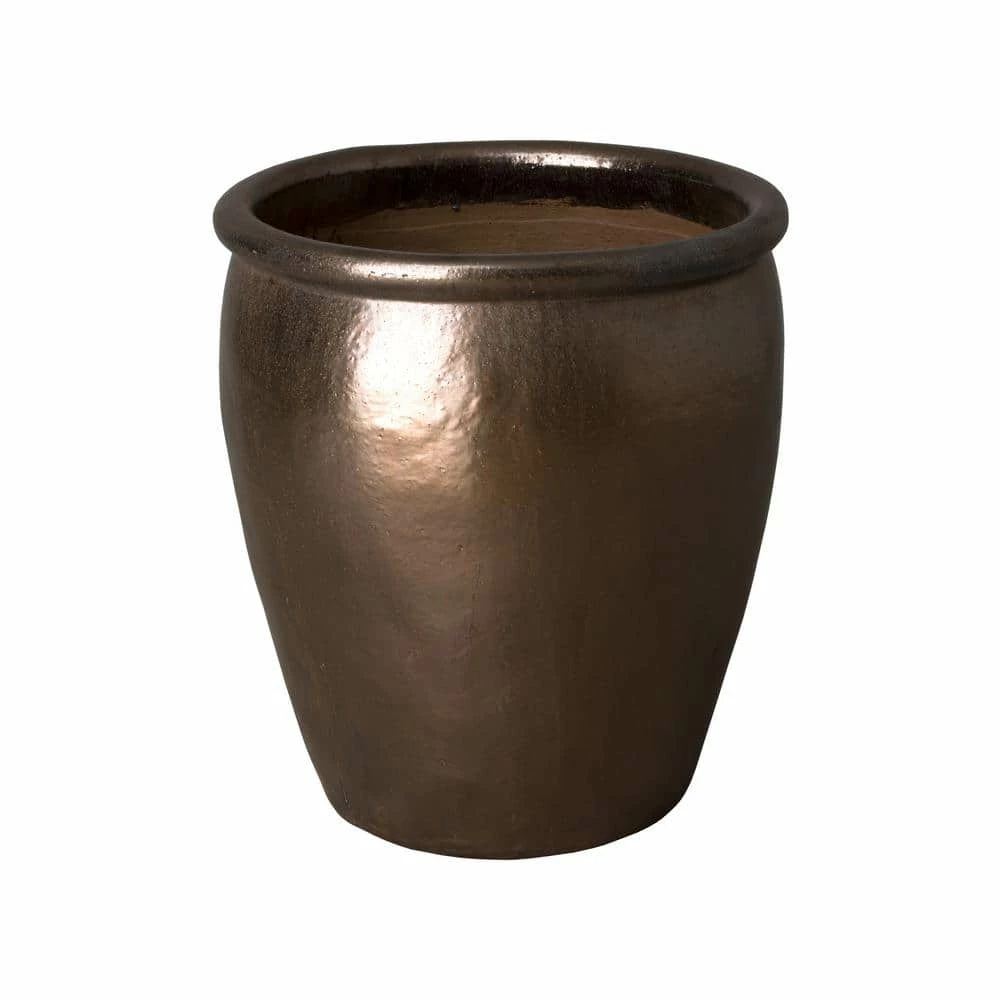 This Round planter is crafted of ceramic with a Metallic glaze. Suitable for outdoor and indoor use. Adds color and texture to your home or garden.