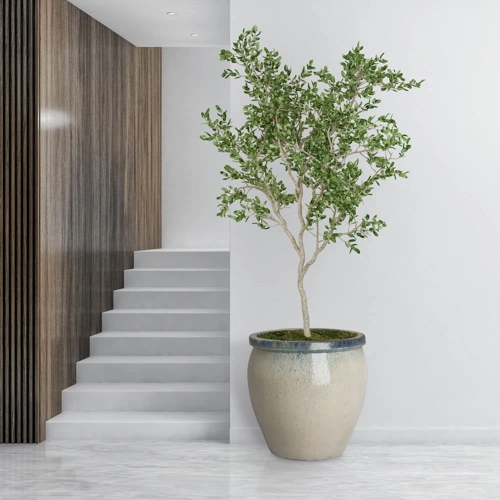 This Round planter is crafted of ceramic with a Distressed White glaze. Suitable for outdoor and indoor use. Adds color and texture to your home or garden.
