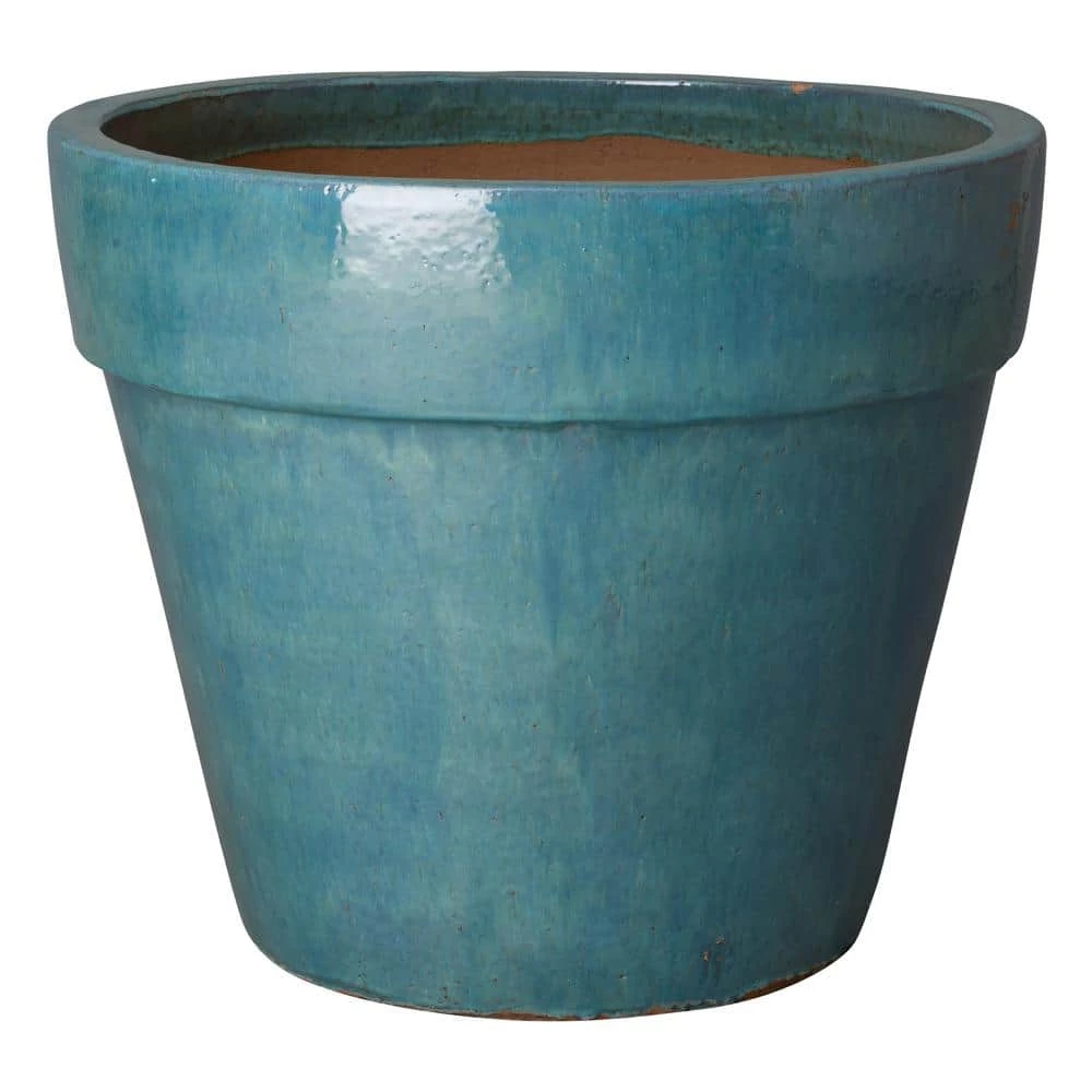 This Round Flower Pot planter is crafted of ceramic with a teal glaze. Suitable for outdoor and indoor use. Adds color and texture to your home or garden.