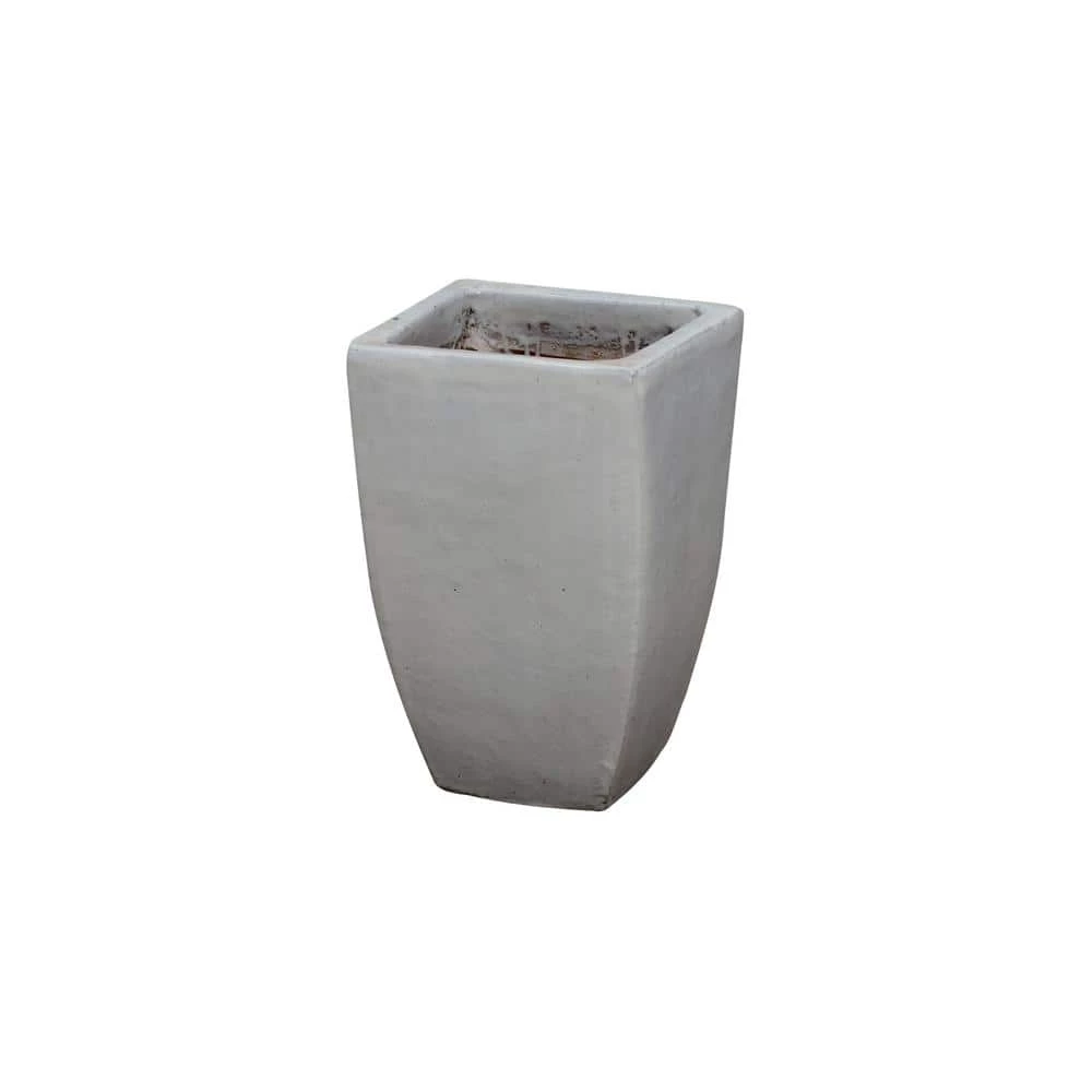 This Square planter is crafted of ceramic with a Distressed White glaze. Suitable for outdoor and indoor use. Adds color and texture to your home or garden.
