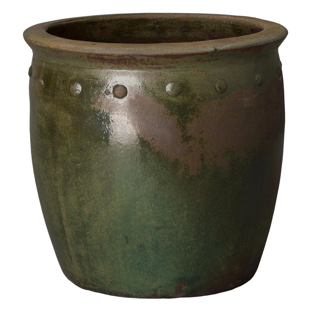 Emissary’s round pot is an excellent addition to any setting. The studded rim and bulb design makes it a versatile piece. The handcrafted ceramic and green wash makes it a 1 of a kind addition. A perfect accent for earth tone decor.