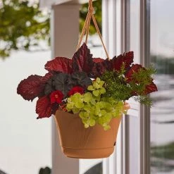 Bloem Lucca 13 in. Terra Cotta Plastic Self-Watering Hanging Basket Planter