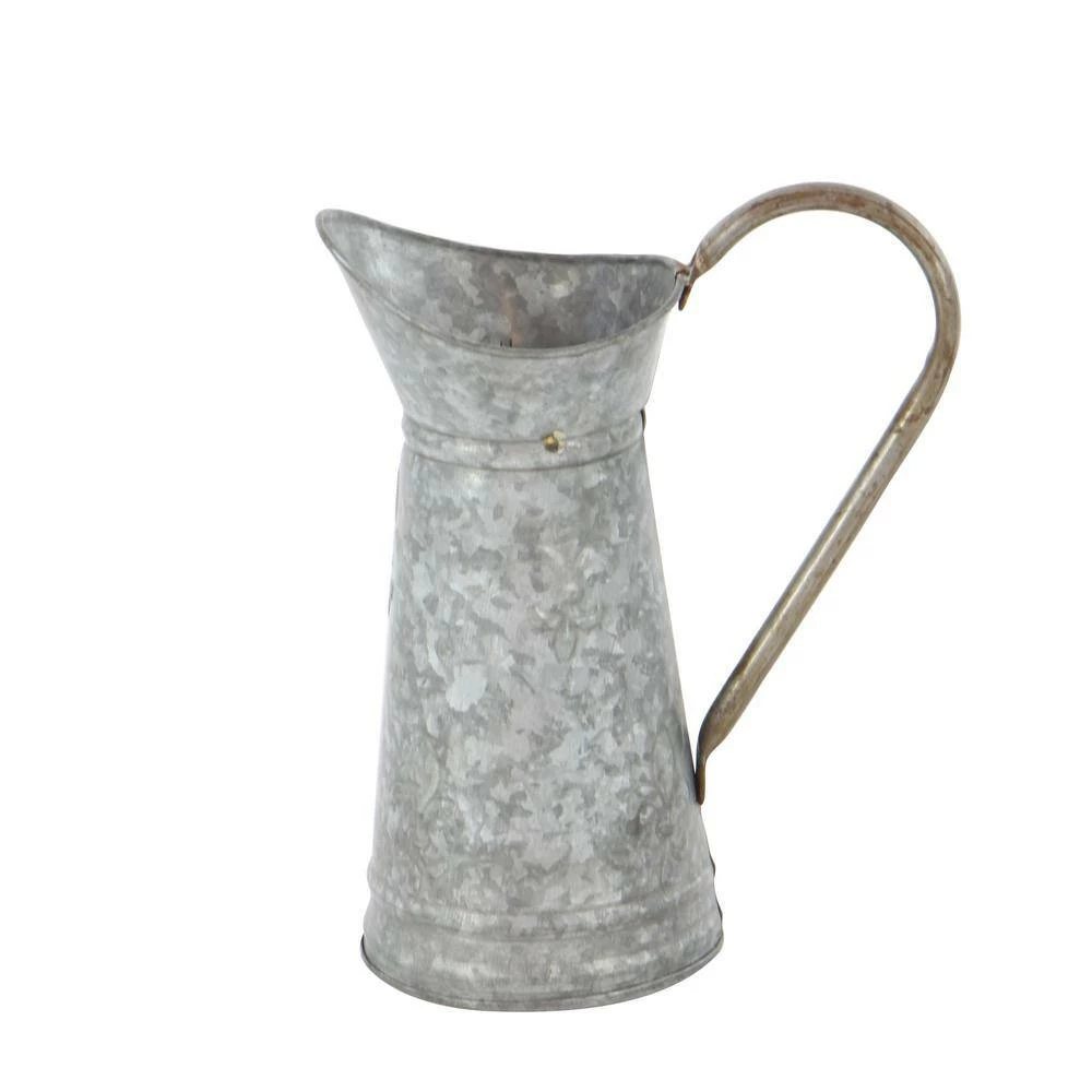 This decorative pitcher-style planter is ideal for farmhouse, vintage, and rustic-themed living spaces. Designed with black rubber stoppers at the base that prevent scratching furniture and table tops, as well as sliding around. This item ships in 1 carton. Please note that this item is for decorative use only. Suitable for indoor and outdoor use. Made in India. Planters do not have drainage holes but they are not watertight. Farmhouse-themed style.