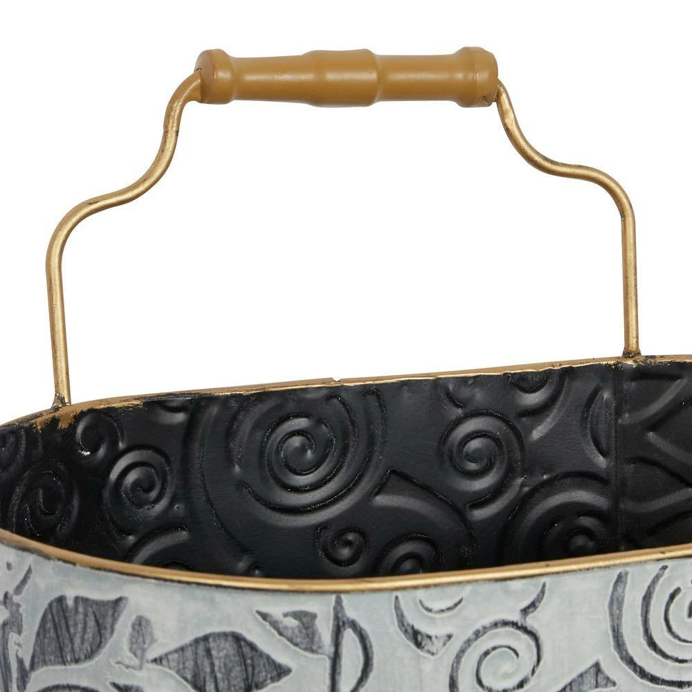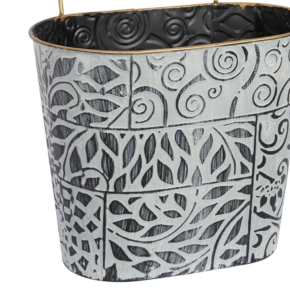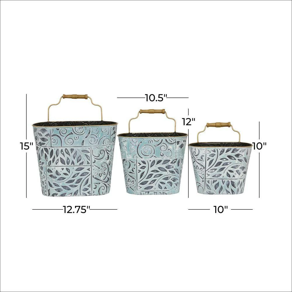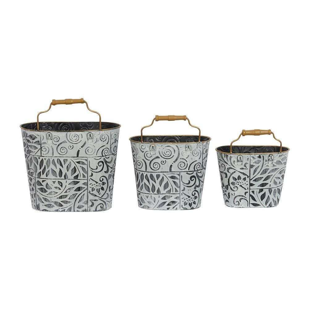 Use the variation in pot size and depth and height of this 3-in-1 set of indoor planters to furnish contemporary or farmhouse interiors. Decorative handles and no-drainage hole pots make up the solid construction to not disturb the calmness in the corner of your living space. Pots can be used as planters or as accent pieces together or separately. Use as plant holders or tabletop displays in country cottage homes Wipe clean with a dry cloth. Planters have decorative handles Keyhole hardware on one side for easy mount. Suitable for indoor and outdoor use No drainage holes. This is a 3-in-1 set of hanging bucket indoor planters. Farmhouse-themed style. This item comes shipped in one carton. Planters do not have drainage holes but they are not watertight.