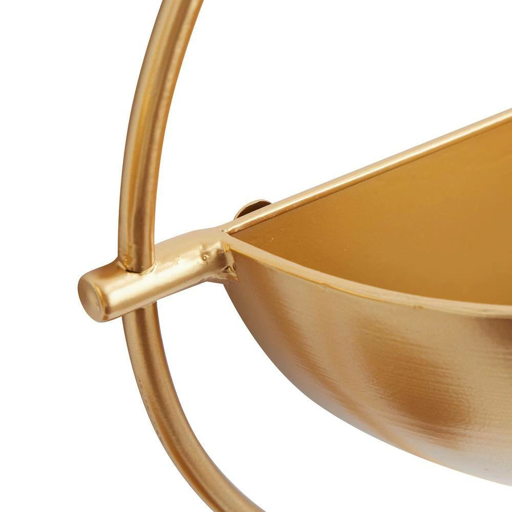 - The gold semi-circle pots are securely mounted on round open metal frames