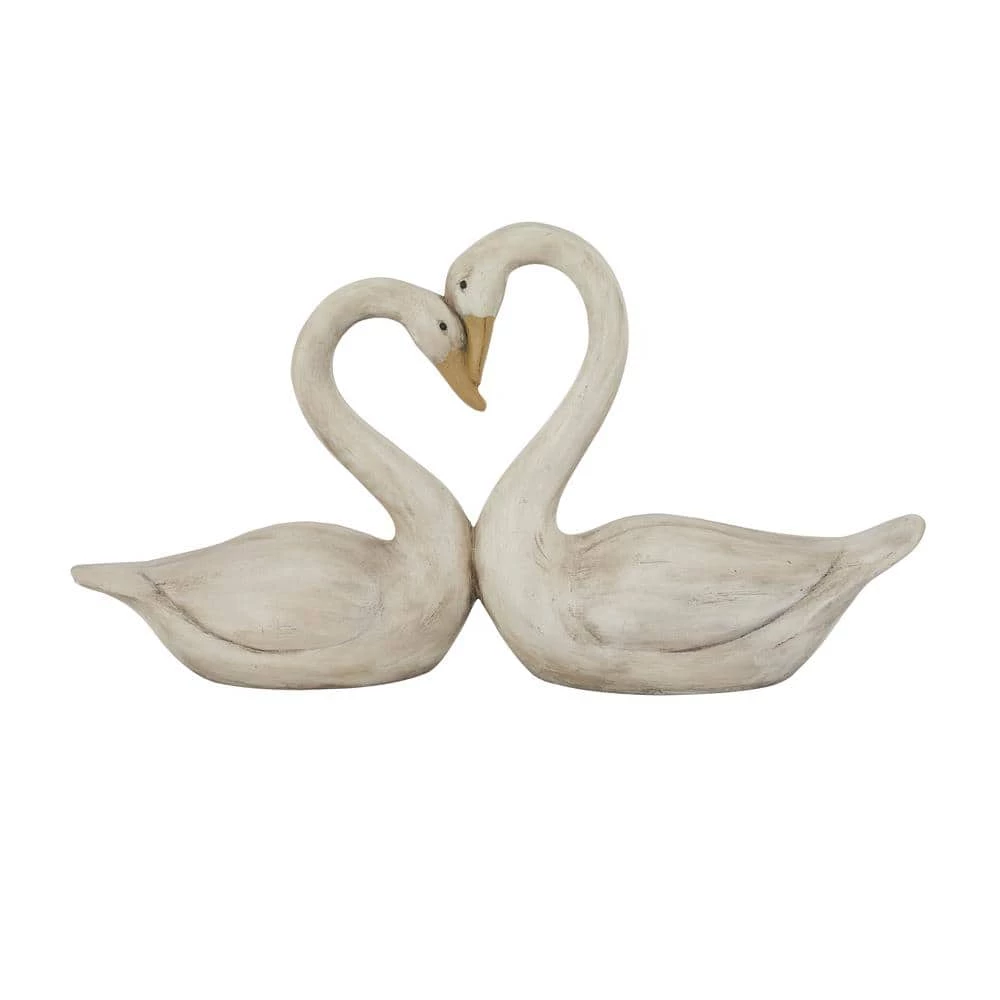 - Ceramic swan figurine showcases a swan couple with their necks and heads forming a delightfully charming heart shape
