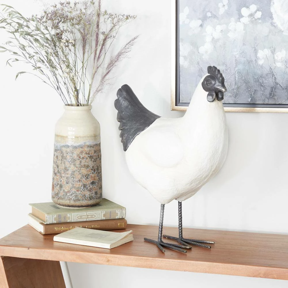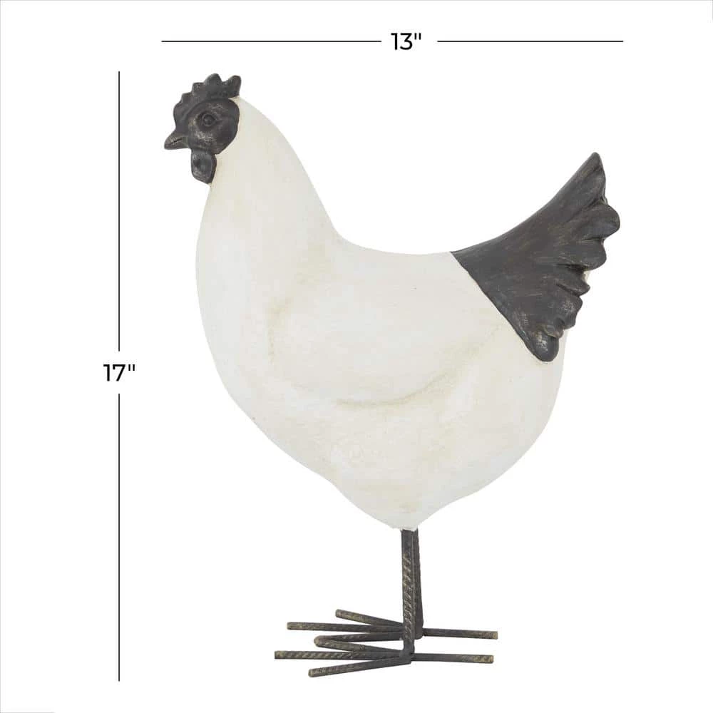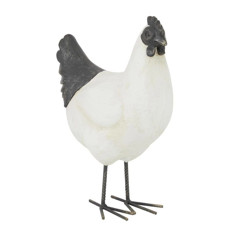- This sturdy chicken sculpture features a standing chicken with a W-shaped feet and a gray head and tail accent finish
