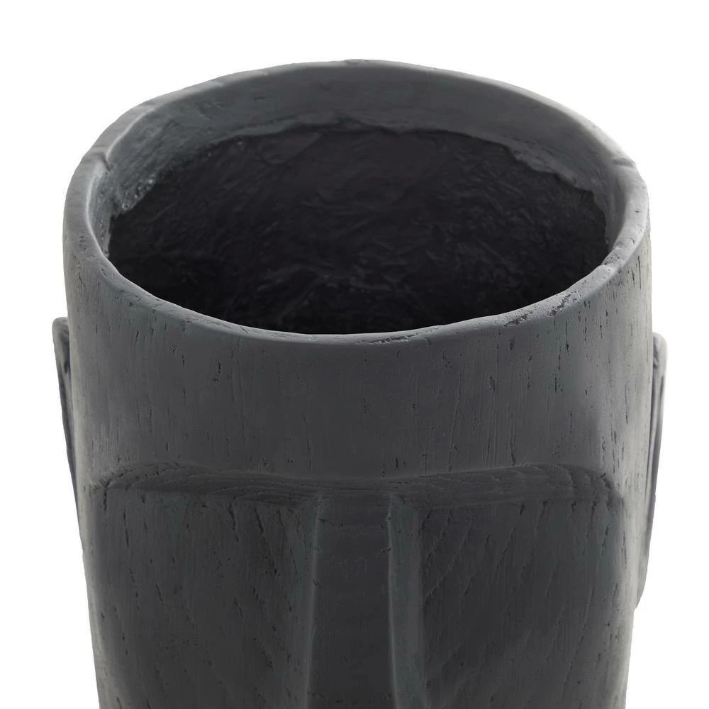 This item features a deep pot with slender structure making a friendly planter for any compact space. Enhance the mood and the look of your room with some plants in this playfully designed planter. This dark gray face garden planter is bound to impress your guests with the eye-catching features and charming atmosphere it provides to your home. This item ships in 1 carton. Suitable for indoor and outdoor use. This has no drainage holes. Contemporary Style.