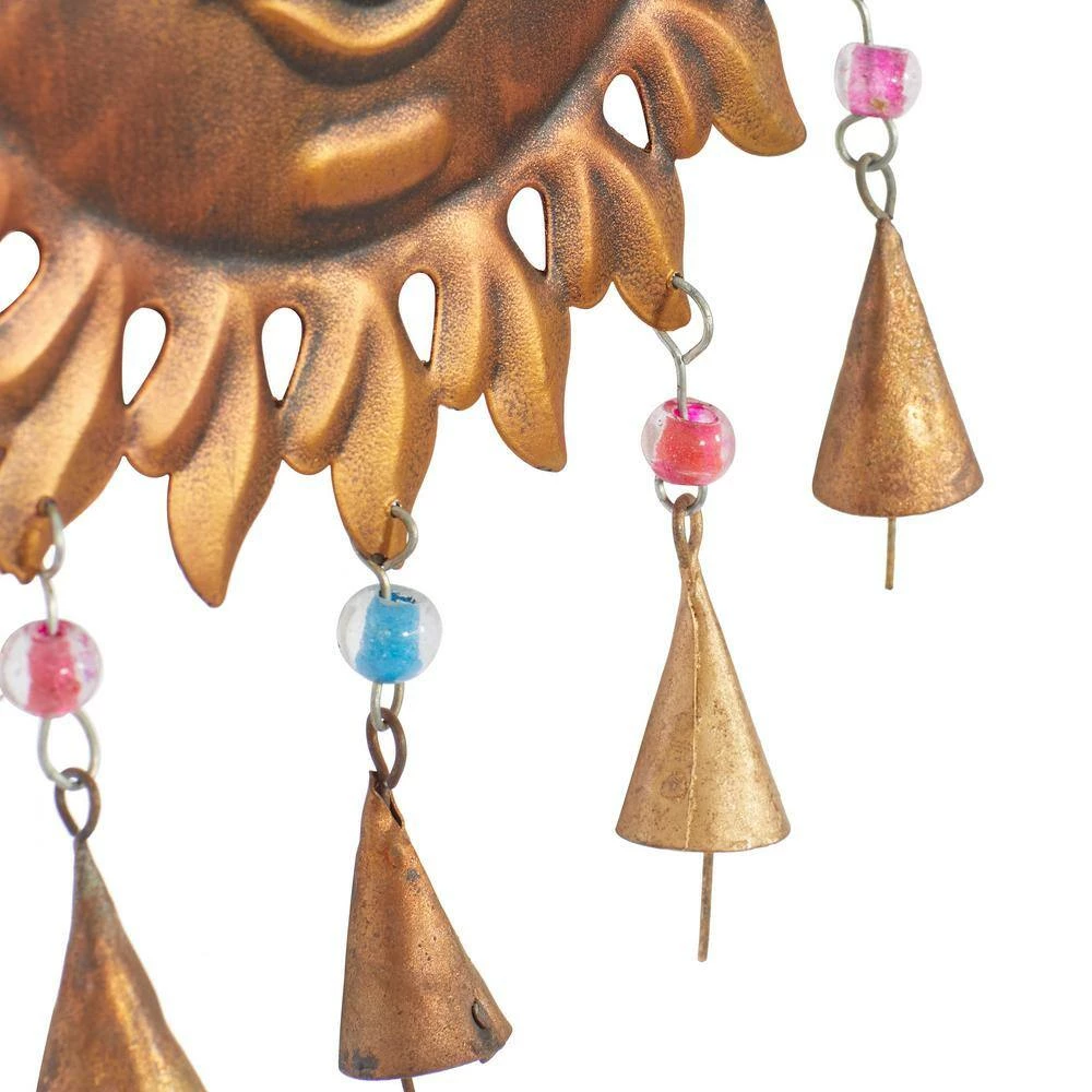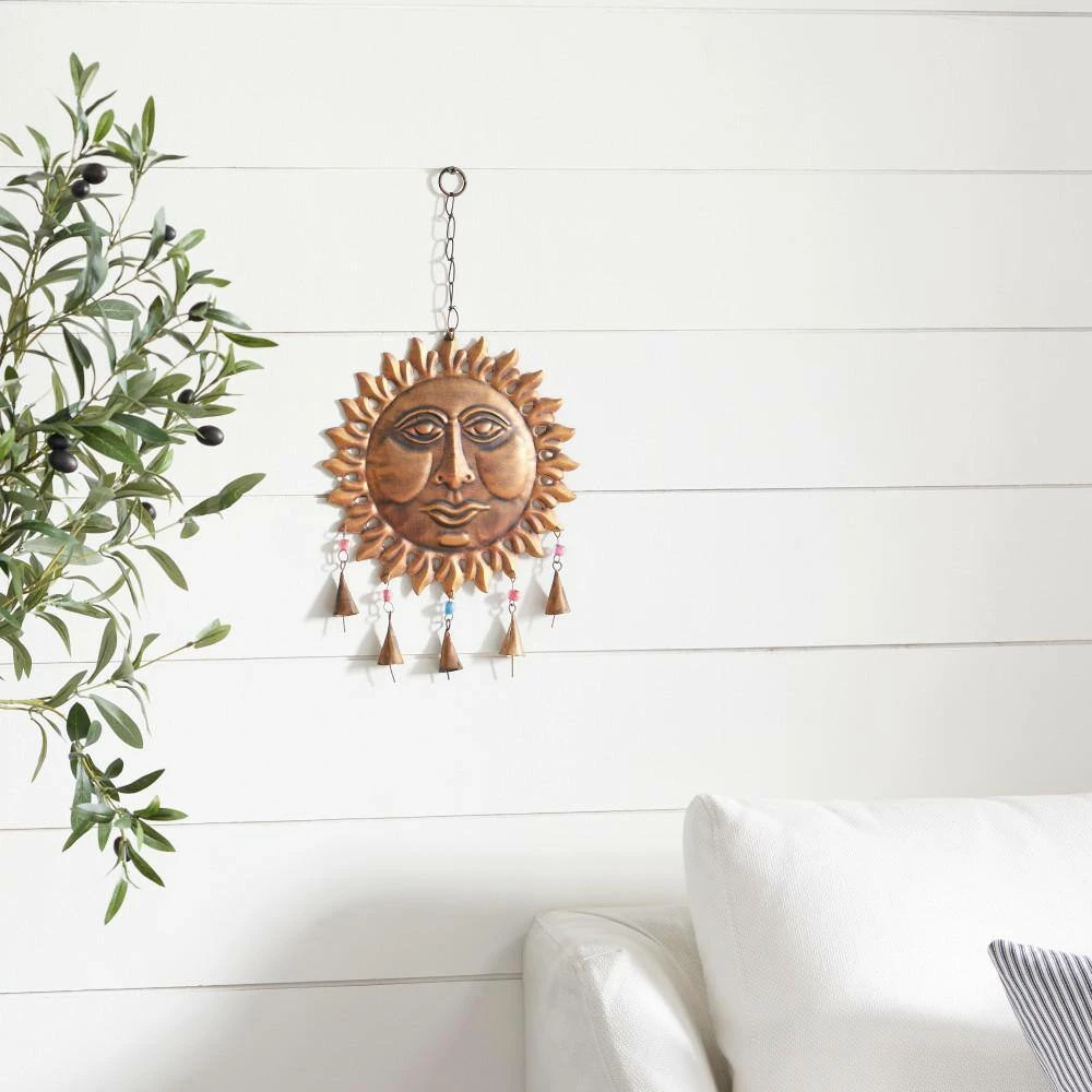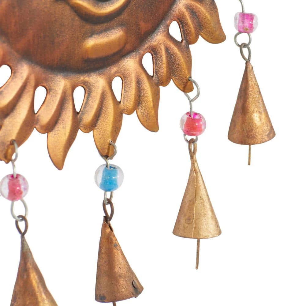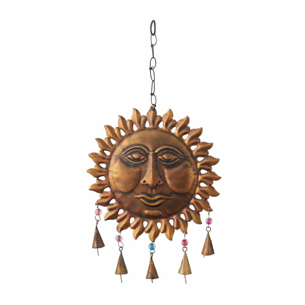Experience the melodious tunes of this bell in your eclectic home when placed near windows or the door. This item ships in 1 carton. Designed with petal patterned sun rays. Hanging chain allows for easy hanging ; nails and screws are not included. Suitable for indoor use only. Made in India. Eclectic style.