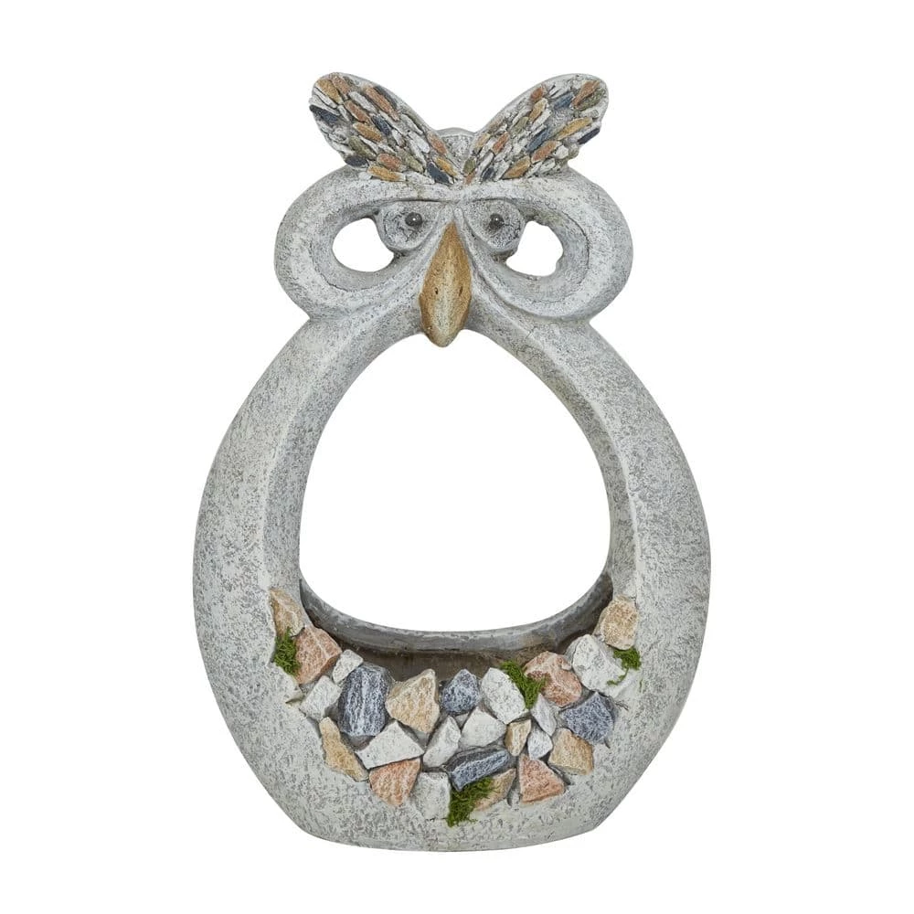- Fiberglass is molded into a planter and decorated with owl details