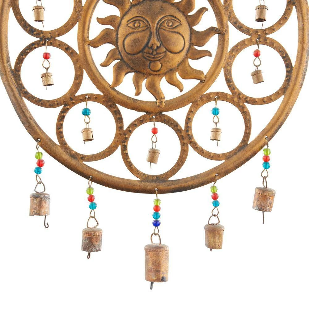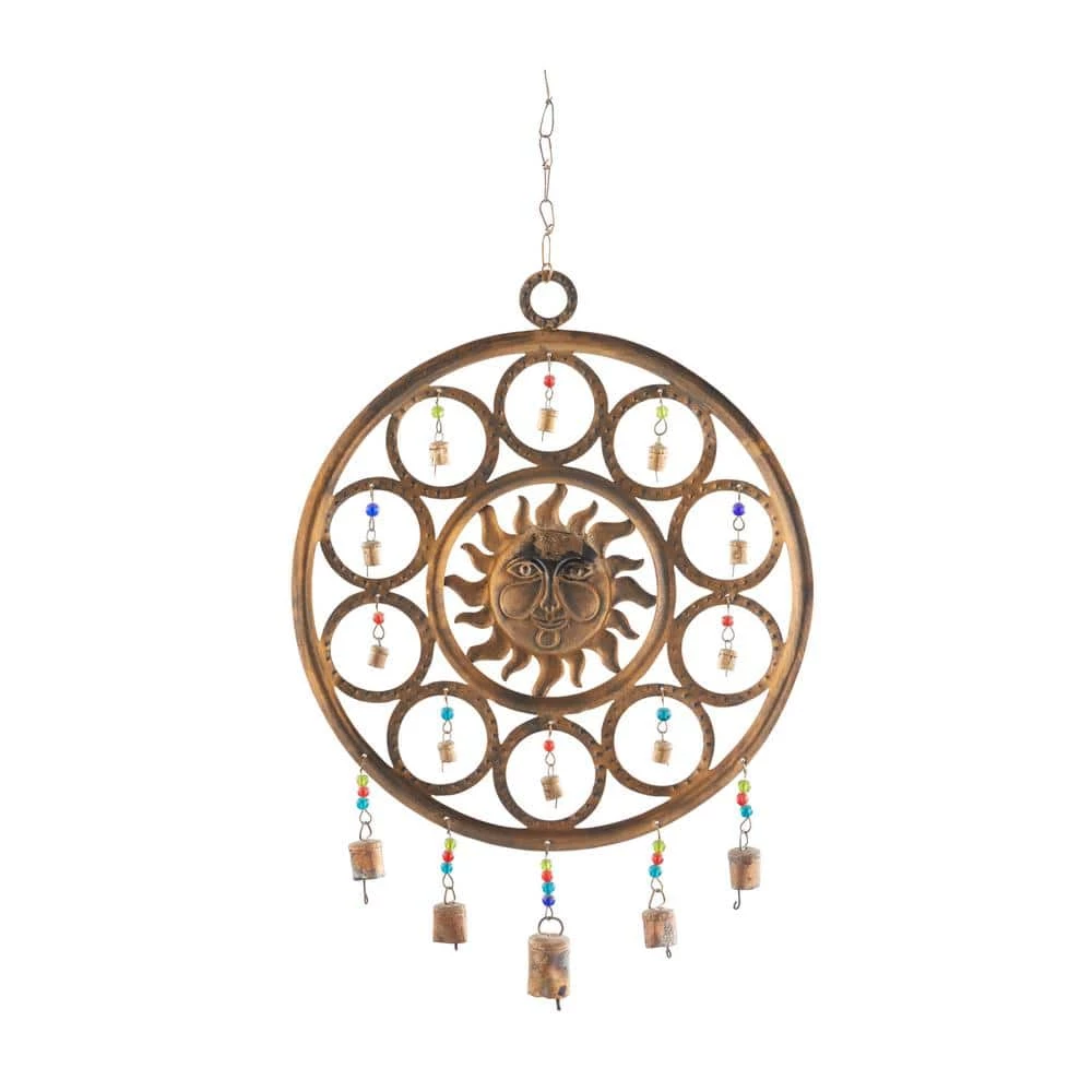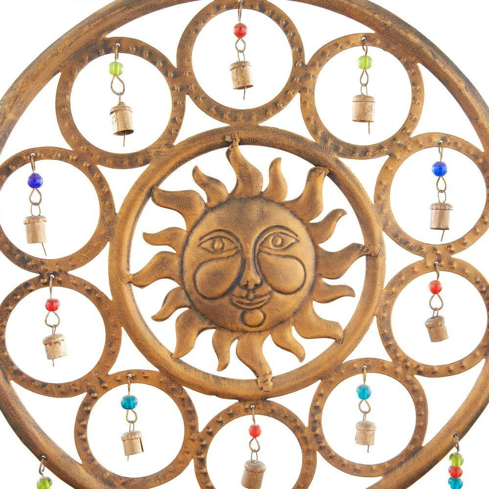 - This sun face windchime is molded and shaped iron metal materials to achieve the eclectic design