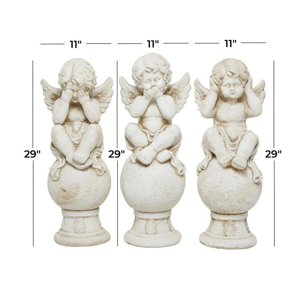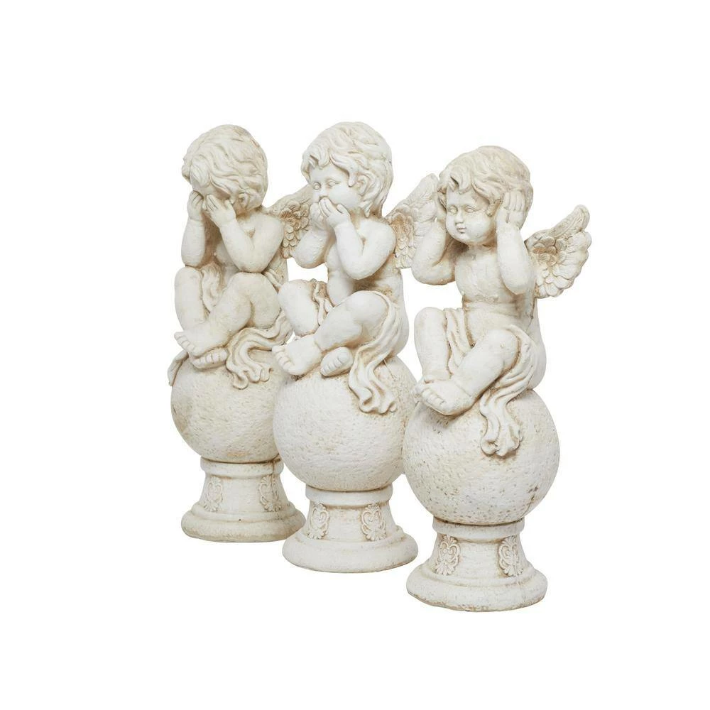 A creative way to add a welcoming look with bold design into your outdoor setting. This garden sculpture is perfect for creating a focal point and adds an inviting look to your outdoor patio space. Elevate the decoration of your garden with the help of this set of 3 whimsical white angel sculptures that can impress your guests. This item ships in 1 carton. Suitable for indoor and outdoor use. This set comes with 3 white angel sculptures. French Country Design.
