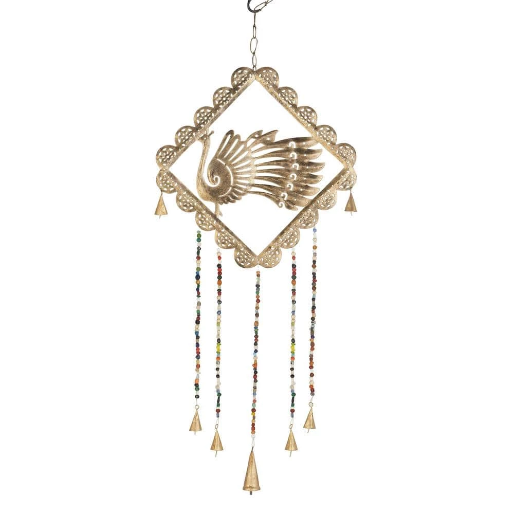 It is a great addition to your home decoration and will surely complement your existing furniture. A light and delicate piece to create a whimsical atmosphere anywhere in your home. Experience the melodious tunes of this windchime in your eclectic home when placed near windows or the door. This item comes shipped in 1 carton. Chain attached for easy hang. Suitable for indoor use. Made in India. Eclectic theme.