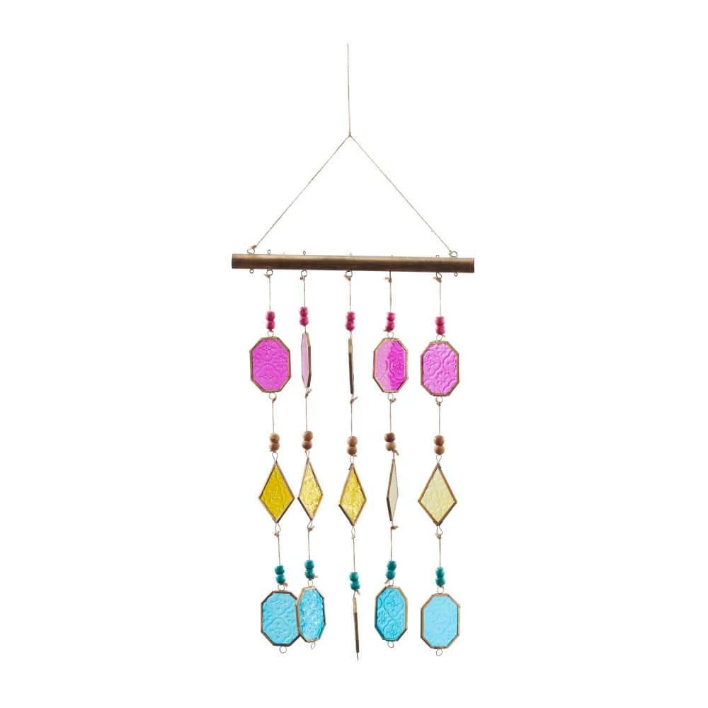 Let the wind give music to your ears as you hang this beautifully crafted windchime on the top of your doors, windows and balcony area. A light and delicate piece to create a whimsical atmosphere anywhere in your home. The soothing sound of this windchime will keep you relax and rejuvenated throughout the day. This item is shipped in 1 carton. Glass is cut into various shapes to form a stunning collection of glass plated windchimes. This windchime features a durable string hanger for easy hanging via nail or hook, suitable for indoor and outdoor use. Made in India. Contemporary style.