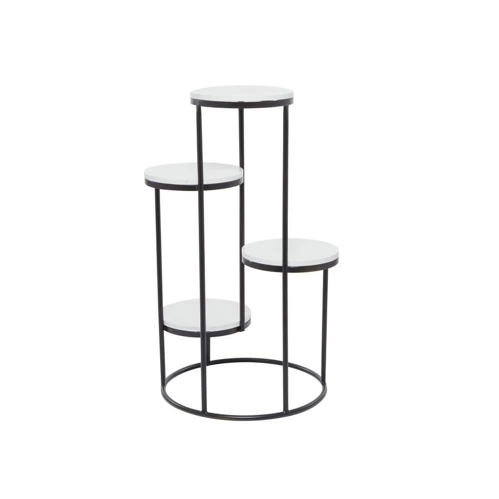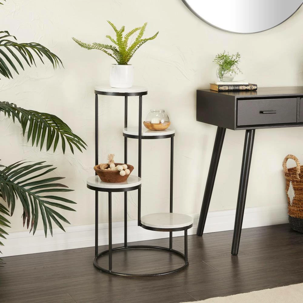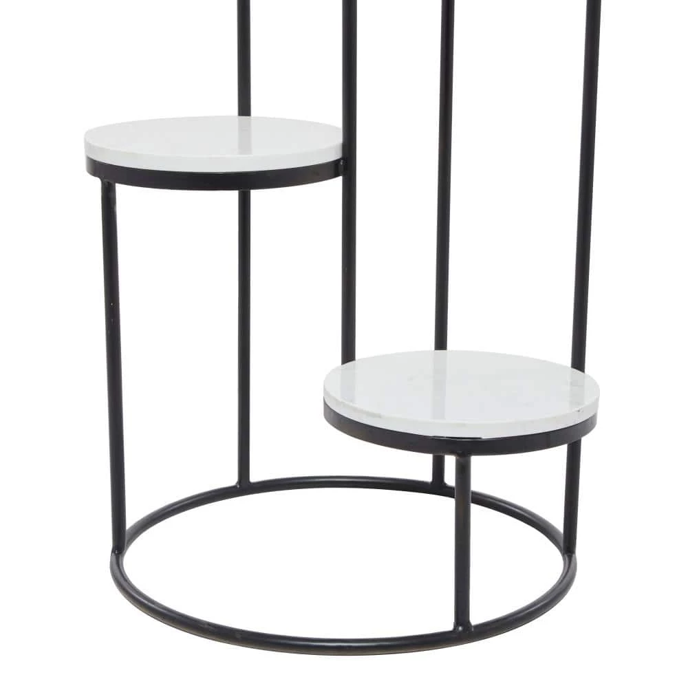 Place multiple plants in one place with this high metal plant stand with marble platforms that can save floor space and adds depth to your indoor setting. This item ships in 1 carton. Suitable for indoor use only. Marble is a product of nature and no two pieces are exactly alike. It is prone to variations in color and/or patterns in the material that add to the beauty and charm of the piece.. Maximum weight limit is 10 lbs each shelf.. Modern style.