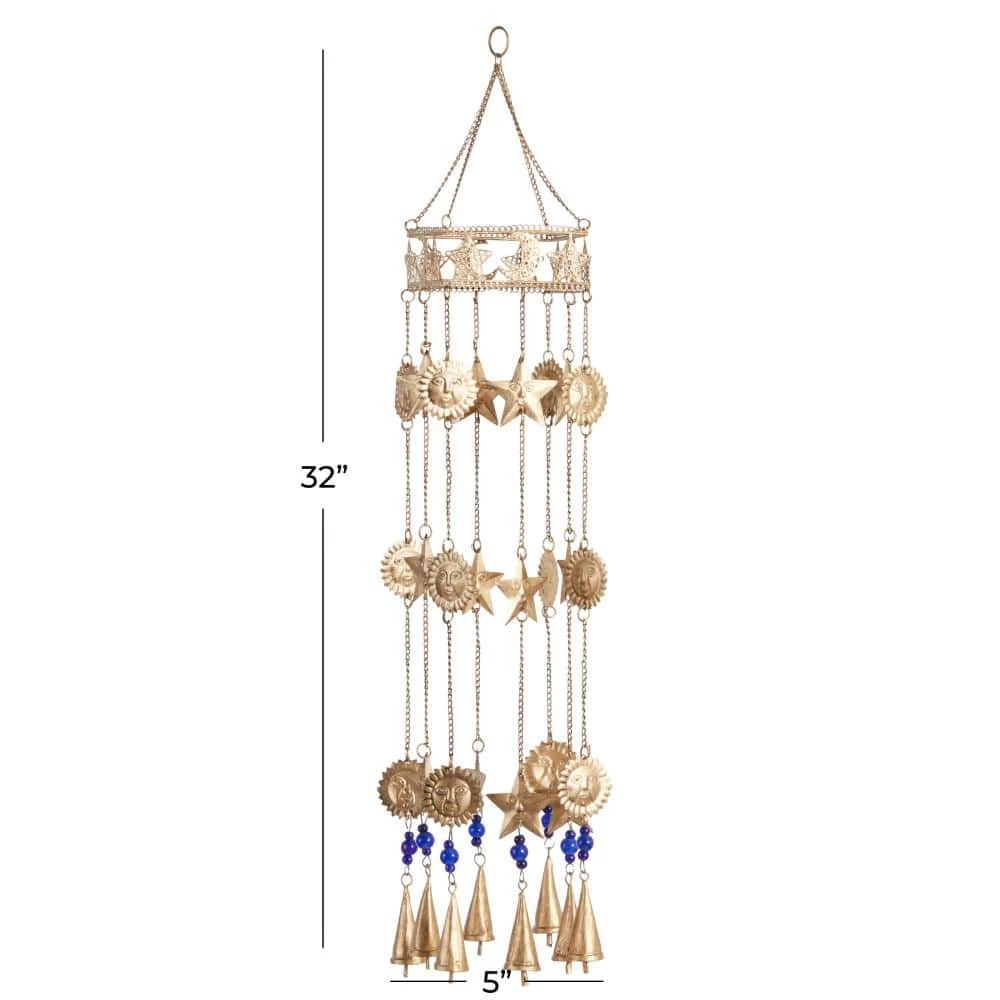 - This bell features stars, moon and sun shape with bells and beads on a solid pattern