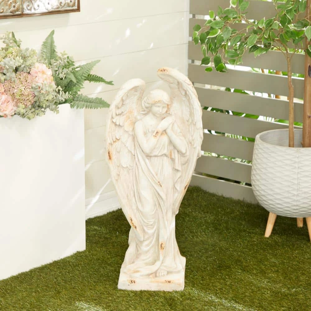 A creative way to add a welcoming look with bold design into your outdoor setting. This garden sculpture is perfect for creating a focal point and adds an inviting look to your outdoor patio space. Add an ethereal detail to your home garden with this angel statue gracing your garden with elegance and beauty. This item ships in 1 carton. Suitable for indoor and outdoor use. Easy to clean simply hose down with water. Country cottage design. Resin is resistant to weather and temperature fluctuations and is non-hydroscopic. It does not absorb water or moisture from the air.