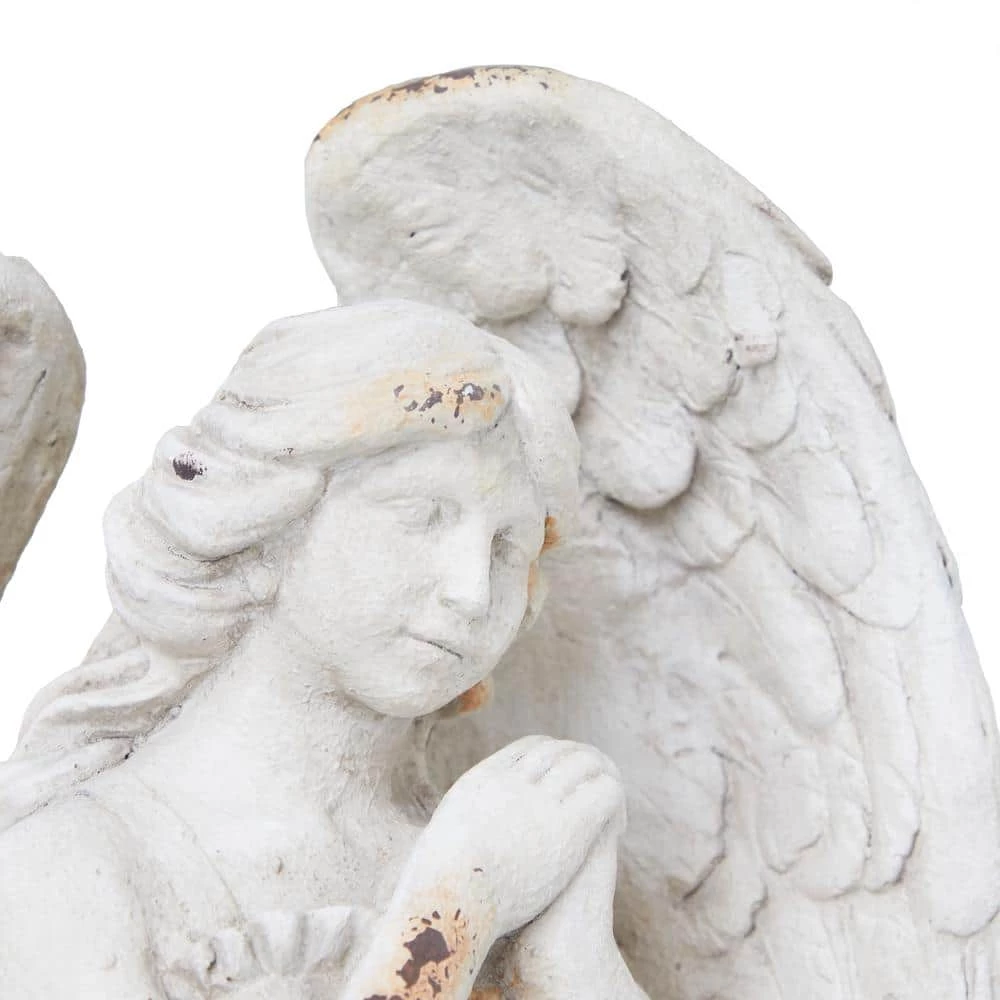 - Ornate details of an angel flaunts this sculpture with pondering gestures and folded wings that complement its delicate clothing