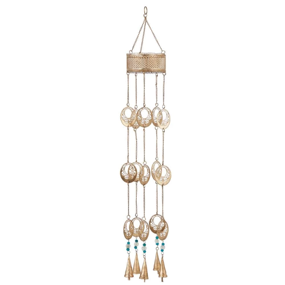- Metal windchime showcases a semi shine gold finish with multi-color beads
