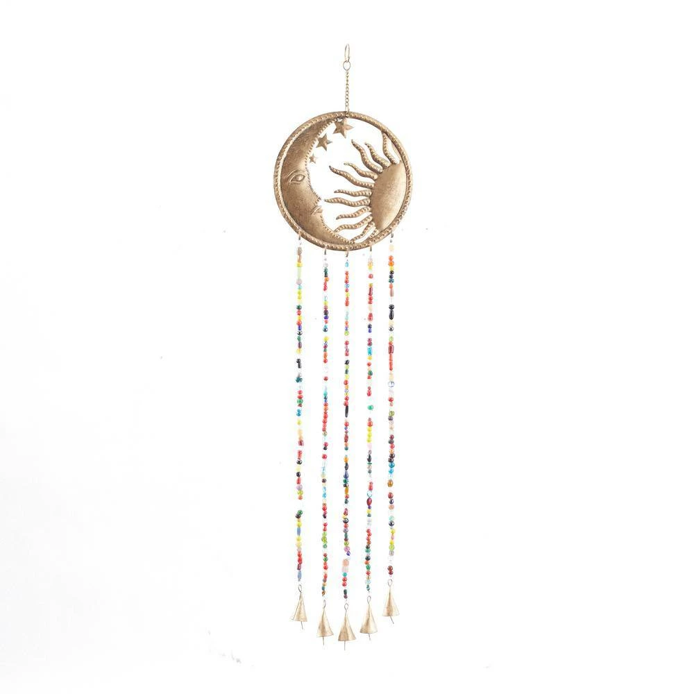 - Relaxing windchime features a sun, 3 stars and a crescent moon face top design and rainbow colored bead chimes with bells hanging at the bottom