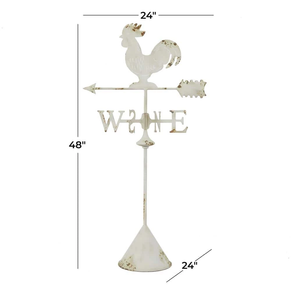 A creative way to add a welcoming look with bold design into your outdoor setting. This garden sculpture is perfect for creating a focal point and adds an inviting look to your outdoor patio space. Add a rustic detail to your garden decorations with this classic rooster weather vane decor at the corners of your bushes or at your garden arbor. This item ships in 1 carton. Suitable for indoor and outdoor use. Avoid using abrasive cleaning pads or detergents, use a sponge with mild soap and warm water, then rinse with a garden hose.. Country cottage. Iron structure are painted with a special coating to help protect it from the elements, iron may show signs of corrosion in salt air environments. Showcases “N, S, W, E” typographies for cardinal directions.