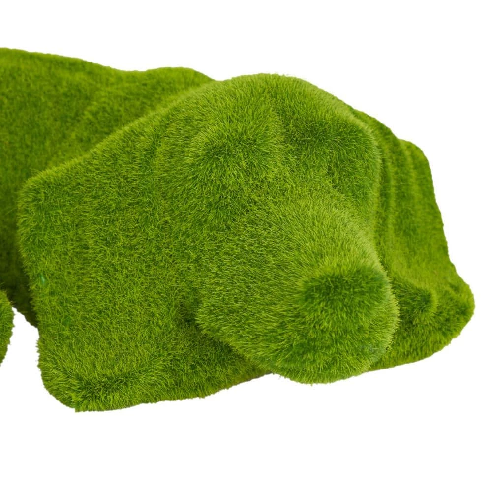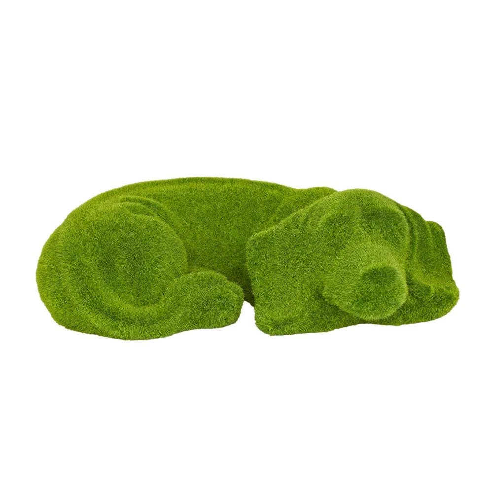- Solid overlay of green grass inspired exterior coats this dog sculpture to complement your outdoor setting for refreshing appeal