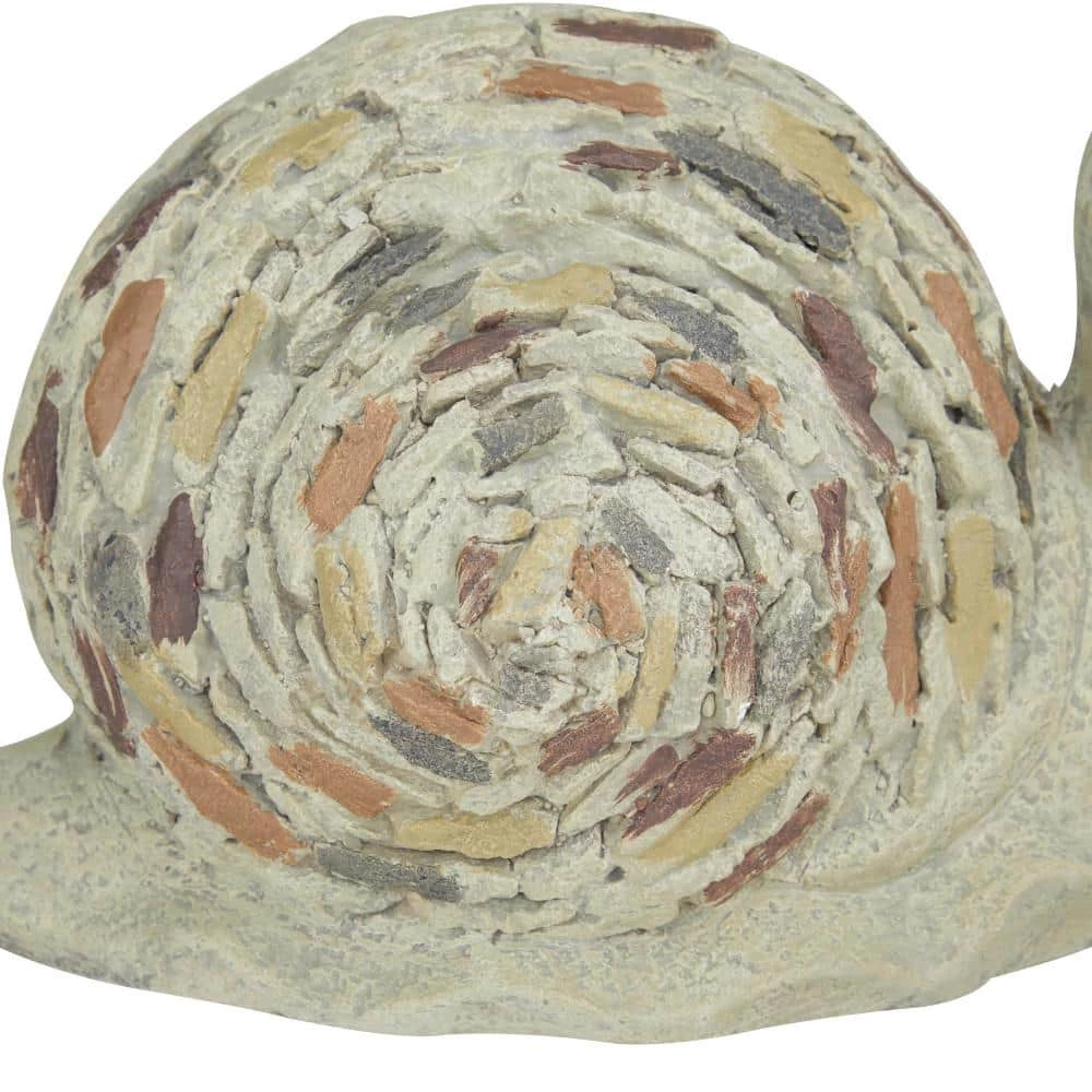 - Polystone is intricately sculpted to create a smiling snail figurine