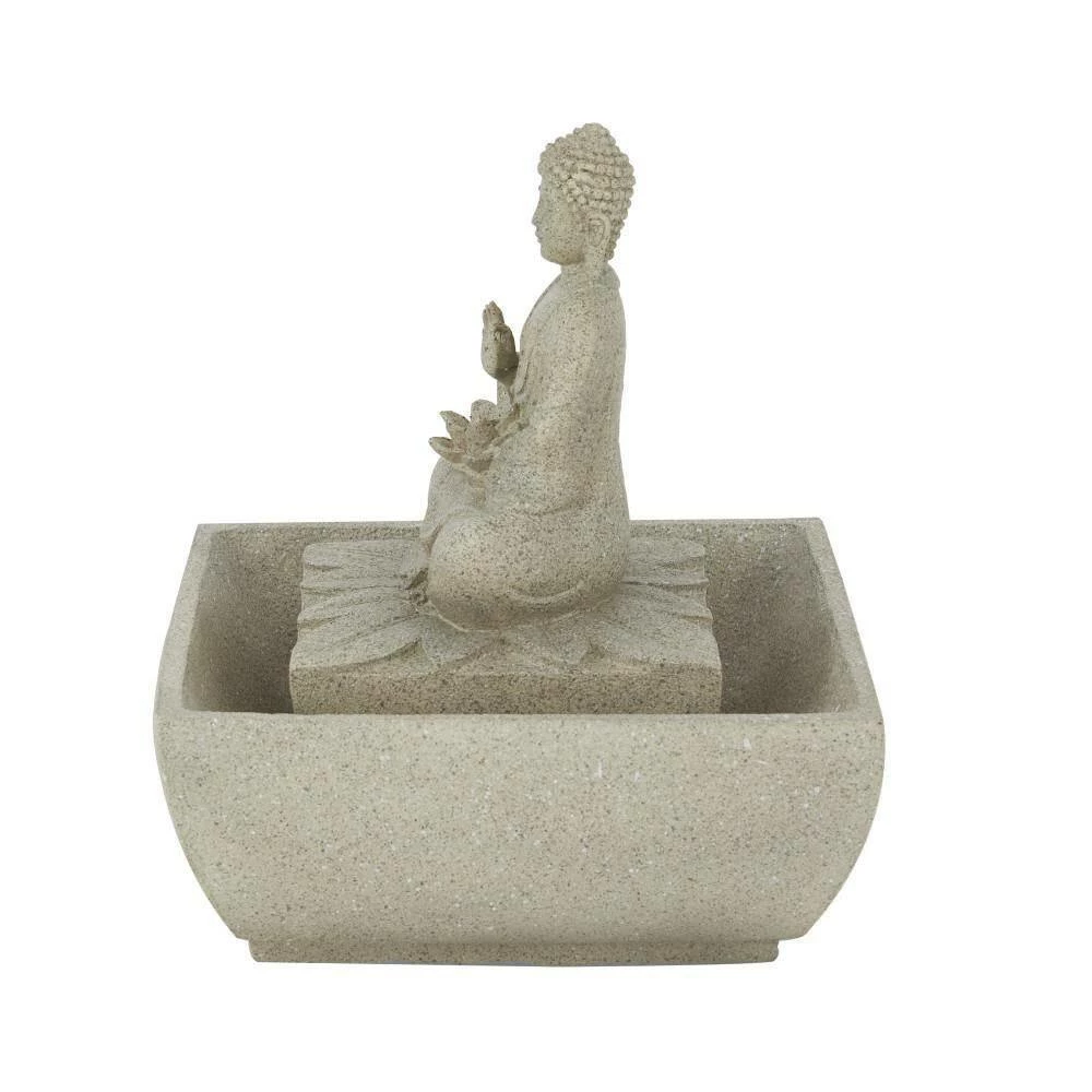 - Fountain decor accentuates a square bowl with a sitting Buddha