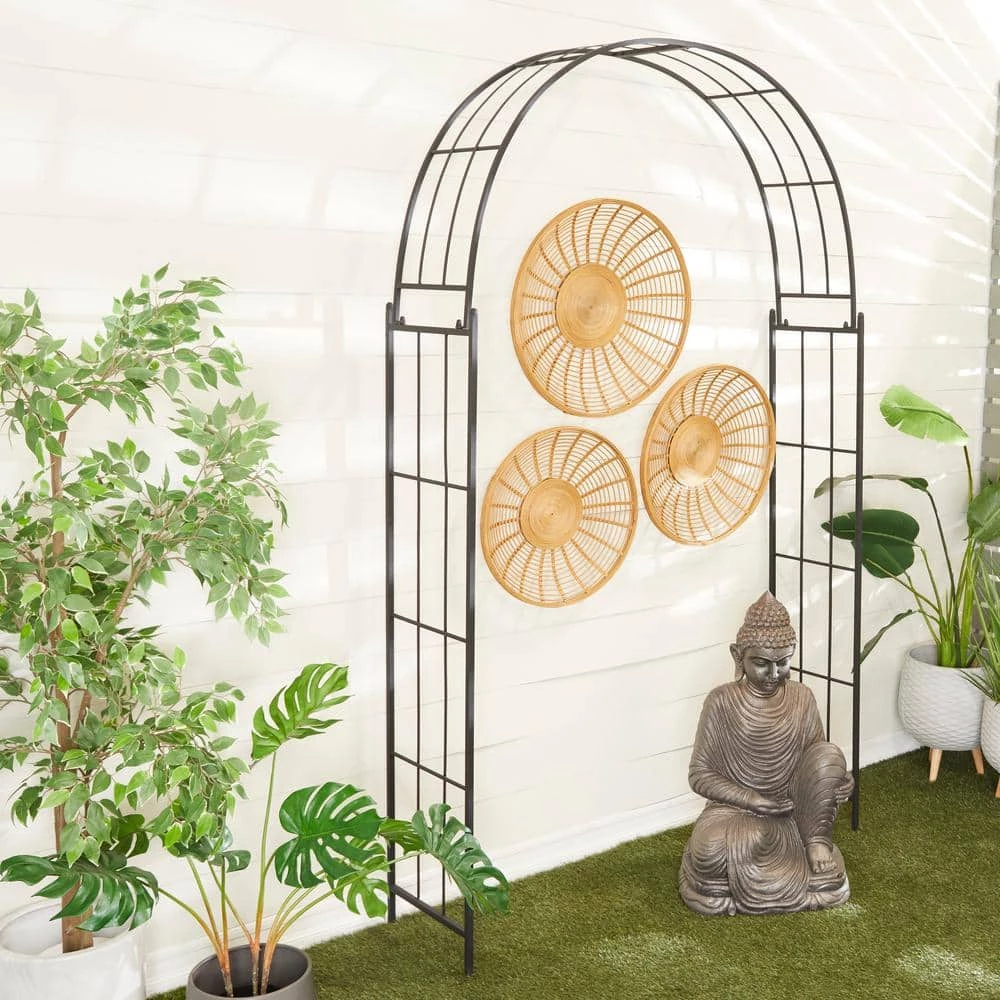 A creative way to add a welcoming look with bold design into your outdoor setting. This garden arbor is perfect for creating a focal point over in your outdoor patio space. Welcome your guests while flaunting your flowering vines with this arch garden arbor trellis. Suitable for indoor and outdoor use. Some assembly required. Contemporary design.