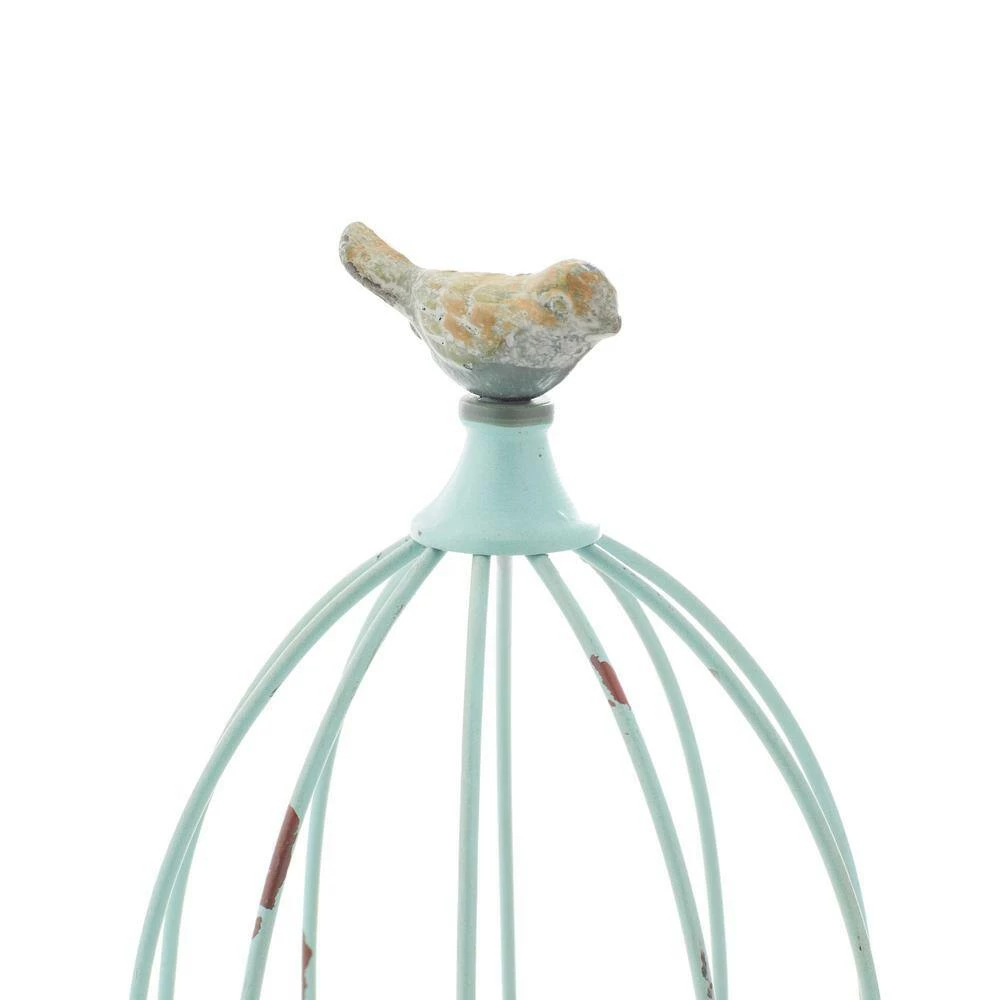 - Green decorative cage inspired planters features round base with bird sculptures on top
