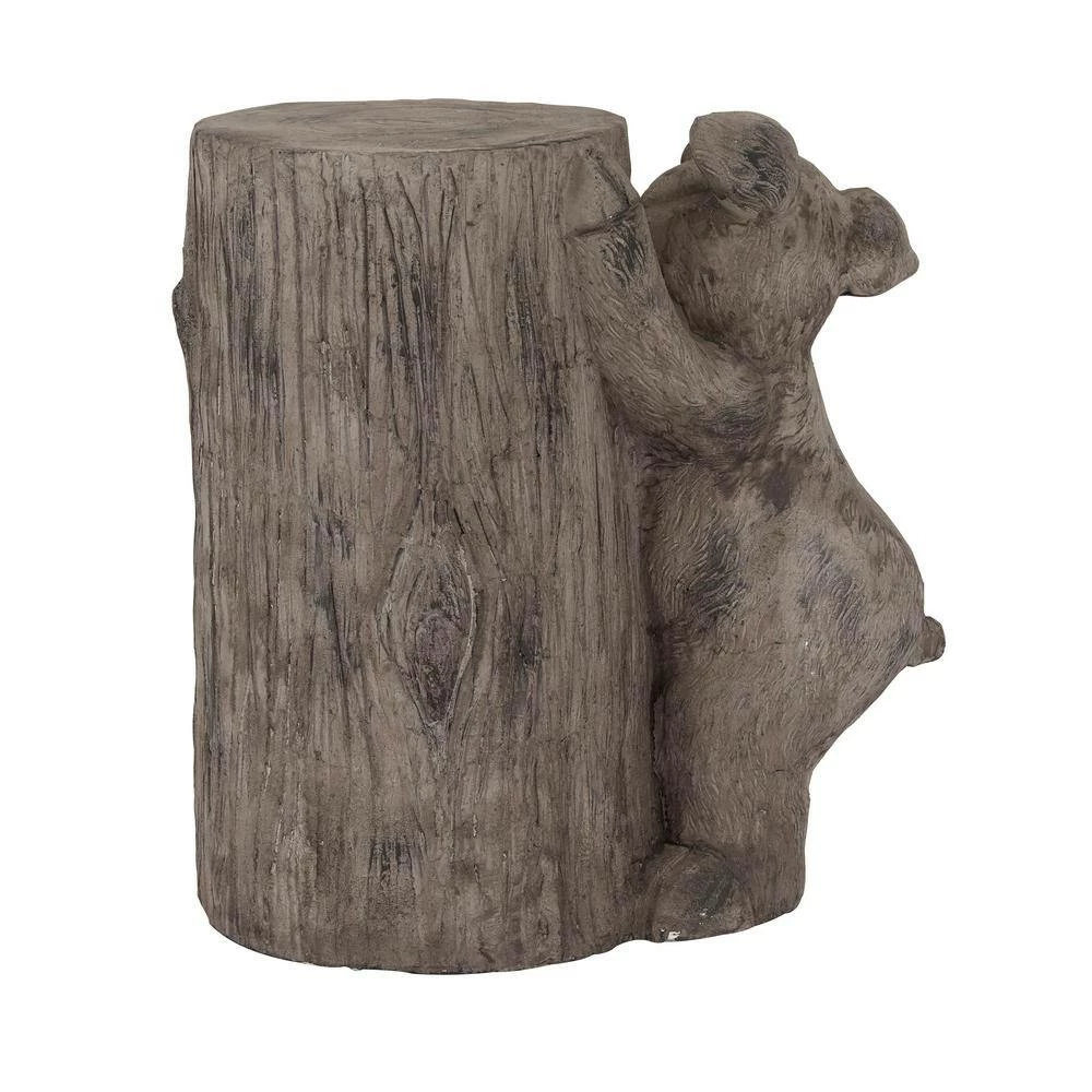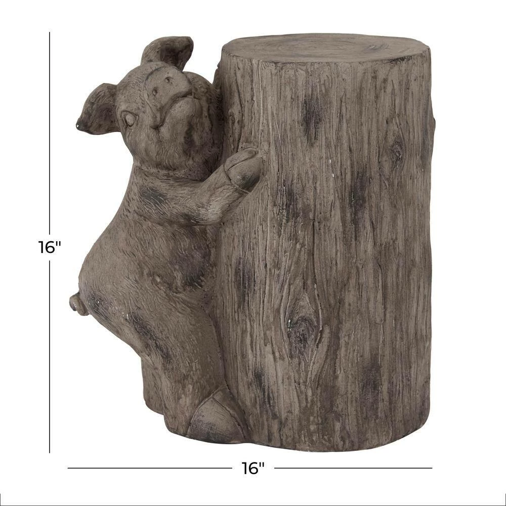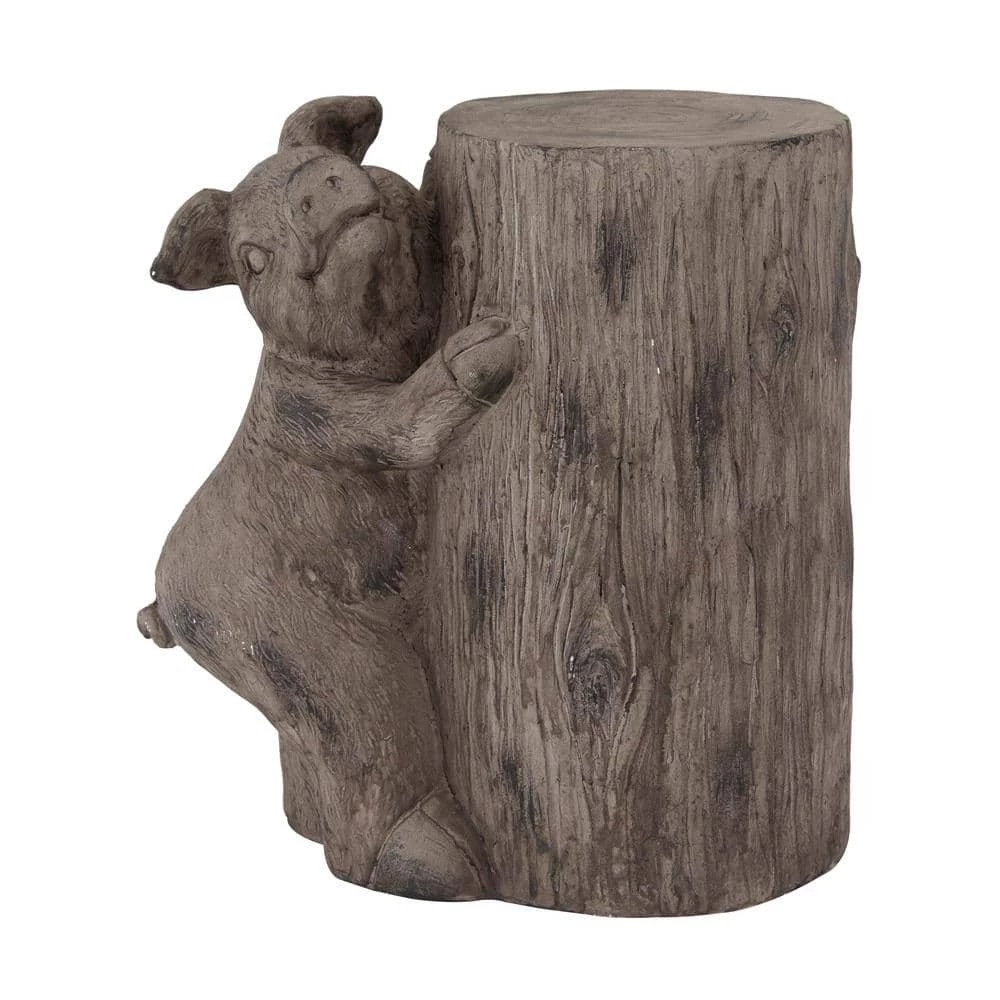 - This pig garden decor features a sculpture of a pig on a standing position giving a cut tree log a tight hug