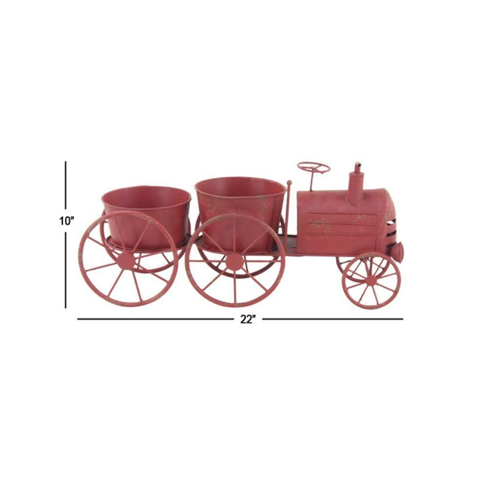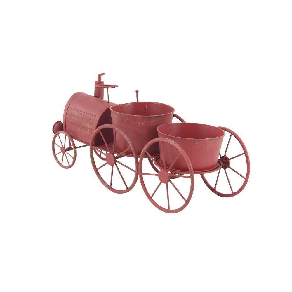 - The decorative construction features realistic parts of the mobile: wheels and puller. It also has 2 round planters at the coach section