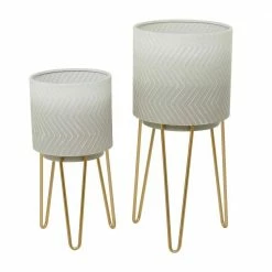 Litton Lane CosmoLiving by Cosmopolitan 26 in. H x 12 in. White Metal Modern Planter ( Set of 2)